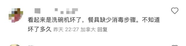 但除了大家的经历,也有网友表示,卫生问题没有大家想象的那么严重,“店里应该是洗碗机坏了,餐具缺少消毒步骤,但不知道坏了多久。”