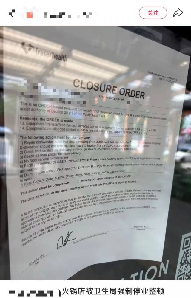 据温房网综合报道:近日,有博主在社交媒体上爆出,一家华人常去的大温知名自助火锅店因卫生问题,被强制停业整顿,引发了大量网友的关注和热议。