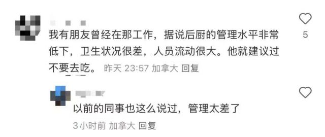 网友B补充:“我有朋友曾经在这家工作,据说后厨的管理水平非常低下,卫生情况很差,人员流动大,他之前就建议我不要去吃。”