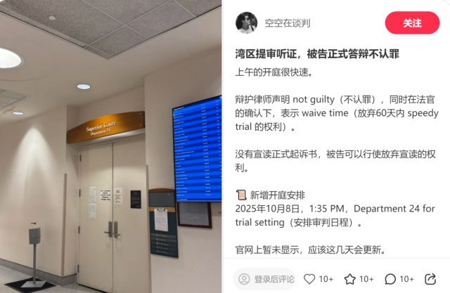 社交媒体小红书上,不少网友发文表示在现场或线上旁听了今天的庭审,从画面中看,在现场排队参与旁听的人不少,场面有些拥挤。