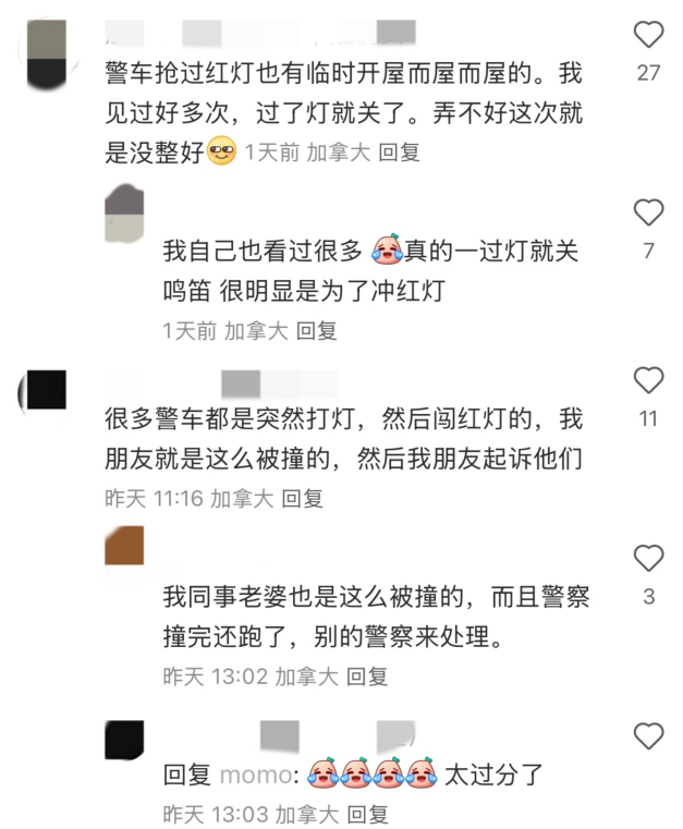 网友C附和:“我同事老婆也是这样被撞的,警察撞完还跑了,是别的警察来处理的!”