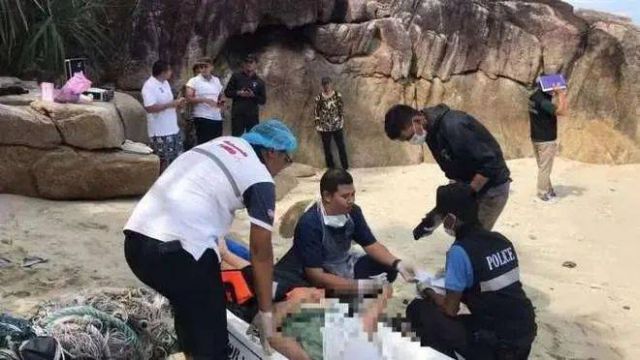 因为位置偏僻,事件报警过程也是一波三折——当时目击者的报警电话是直接通到首都曼谷的,后经过层层传达,才联系上丽贝岛警方,这时距离事发已经过去了很久。