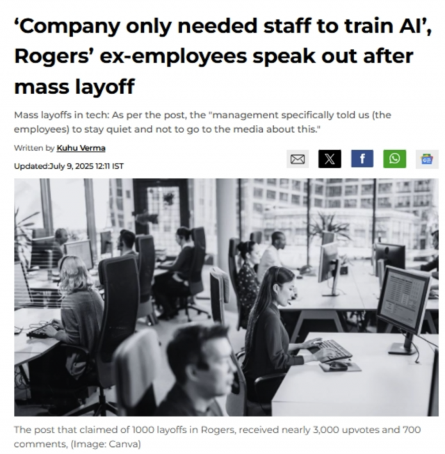 有网友披露,“公司其实只是需要我们来训练AI……我们被彻底利用了。”