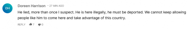 “他撒了谎,我怀疑不止一次。他是非法来到这里的,必须被遣返。我们不能继续允许像他这样的人来到这里,利用这个国家。”