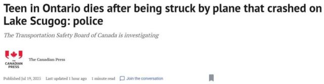 这起悲剧发生在安省斯库高湖(Lake Scugog),一架小型水上飞机坠毁后撞上了湖边的码头,正好撞击到当时站在码头上的少年,导致其当场不幸身亡。
